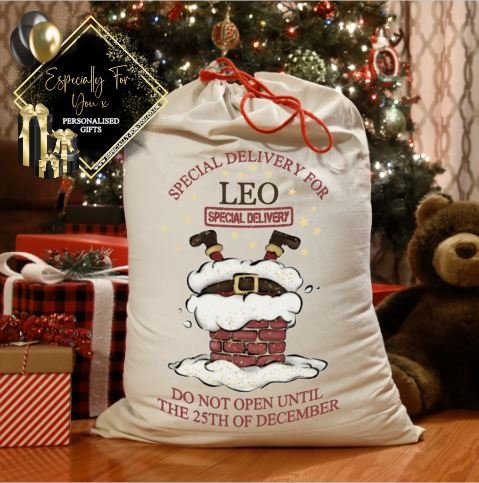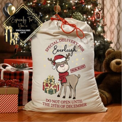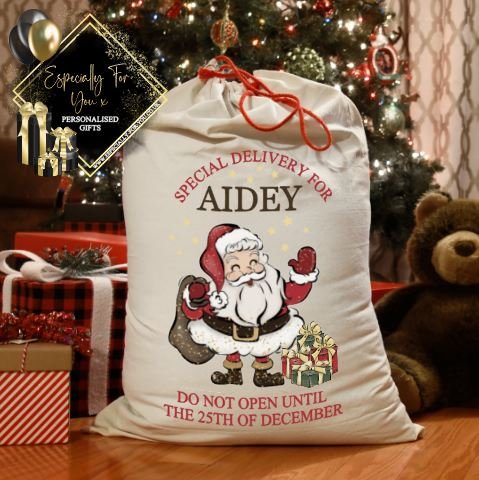 Natural linen look santa sack finished with a red cord tie will make a beautiful addition under any tree.